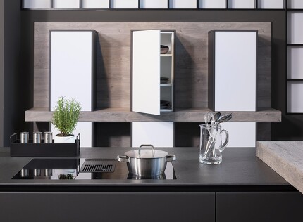 Sie überlegen gerade, in welcher Farbgebung Sie Ihre neue Küche gestalten möchten? Oder geht es zur Zeit darum, die Wände in Ihrer Küche neu zu streichen, und die vorhandenen Küchenfronten sind bereits in Grau gehalten? Dann ziehen Sie unbedingt auch diese Wandfarbe in Erwägung: Altrosa. Es passt deswegen so gut zu jedem Grauton – ob uni oder Steindekor – weil Altrosa selbst Grauanteile enthält. Deswegen harmoniert es so schön mit grauen Fronten. Mehr als das hat die Kombination von Grau und Altrosé sehr viel Stil und Klasse, strahlt Eleganz aus und zugleich Weichheit und Wohnlichkeit. Einbaugeräte mit Edelstahlfronten machen sich sehr gut dazu wie das gezeigte Küchenbeispiel mit dem im Highboard eingebauten Backofen zeigt.