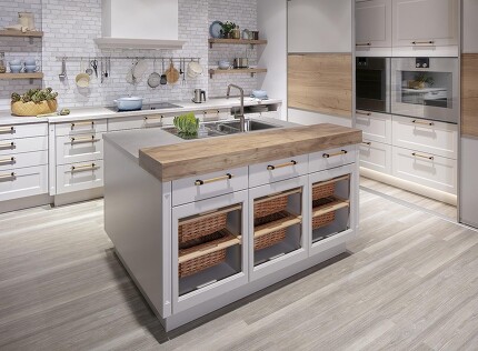 Vielleicht ist es Ihnen schon in der ein oder anderen Einrichtungszeitschrift oder in einer Küchenausstellung aufgefallen: In Designküchen wird häufig darauf verzichtet, die Arbeitsplatte über die Küchenunterschränke überstehen zu lassen, besonders häufig dann, wenn extradünne Arbeitsplatten verwendet wurden. Das sieht zugegeben um einiges schicker aus, birgt aber natürlich den Nachteil, dass wenn Flüssigkeiten beim Hantieren heruntertropfen, sie auch an den Schranktüren landen werden. Steht die Arbeitsplatte wenige Zentimeter über, geschieht dies nicht so schnell, und es lassen sich auch Krümel und Schnippelreste um einiges leichter in den unterhalb der Kante gehaltenen Mülleimer wischen.
