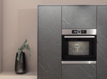 Der Trend zum Schwarz hält an und sorgt dafür, dass auch die Gerätehersteller möglichst viel schwarz gestalten, das früher noch silbern hervorblitzte: Ehemalige Edelstahlelemente werden entweder durch schwarze ersetzt oder weggelassen und kommen mit griffloser Gestaltung aus, bei der sich Gerätetüren durch Antippen oder auf Zuruf öffnen. Letzteres hilft, Fingerabdrücke zu vermeiden, denn gerade wenn die Ausführung in Schwarzglas erfolgt, werden sie störend sichtbar.