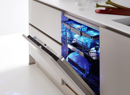 Auch die Beleuchtungseffizienz wird bewertet, denn fast alle Dunstabzüge sind (idealerweise) mit LED-Strahlern ausgestattet. Genauso der Fettabscheidegrad: Wieviel des aufspritzenden Fetts nehmen Abzugshaube oder Muldenlüfter auf? Die Bewertung beginnt bei A, d.h. mindestens 95 Prozent, und sinkt in Zehnerschritten bis auf weniger als 45 Prozent in Klasse G.