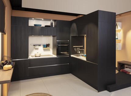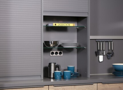 So eine puristische horizontale Unterschrankzeile lässt ein ganz neues Raumgefühl entstehen: Durch hängend montierte, sockellose Unterschränke bekommt man den Eindruck, dass die Küchenmöbel schweben. Die vollausziehbaren Auszüge und verschiedenen praktischen Schranksysteme sind individuell wählbar, genauso die Front-, Korpus- und Arbeitsplatten-Ausführungen.