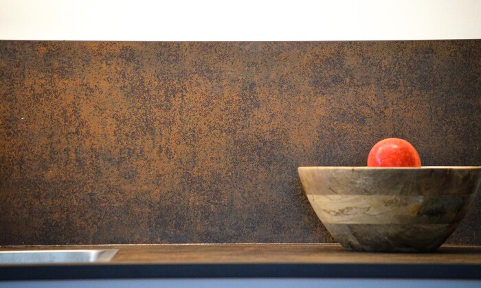 Hier herrscht ein kreativer Mittelpunk für Gespräche rund um Essen, Trinken und Genießen. Eine schöne grifflose Küche mit freistehender Kücheninsel. Dezent und doch extravagant: die polarweiß mattlack Front und die Keramik Arbeitsplatte Iron Corten Satin sind ein echter Blickfang. Passend zur Arbeitsplatte ist die Rückwand, welche durch die LED-Beleuchtung von den Oberschränken toll in Szene gesetzt wird. Der Geräte Hochschrank umrahmt den Miele Backofen und den Liebherr Weinkühler. Ein wichtiges Highlight in dieser Küche ist das Bora Pure Induktionskochfeld mit integriertem Kochfeldabzug.