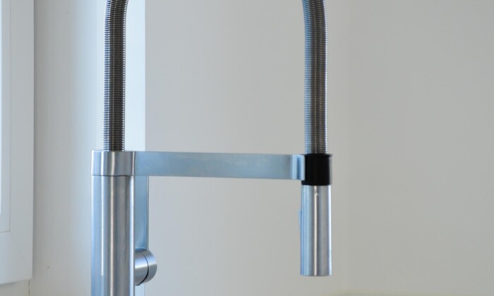 Die Smartline Kopffreihaube, die Mikrowelle, die Wärmeschublade, der Combi-Dampfgarer und das Kochfeld von Miele, als auch das Edelstahl Unterbaubecken und die Edelstahl Küchenarmatur von Blanco durchbrechen die weiße Küche - wirken dennoch nicht auffällig, sondern dezent.