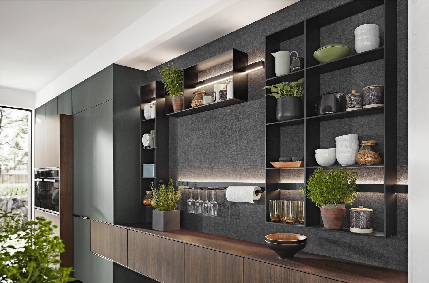 Die Relingsysteme von nobilia "Sign Emotion" sind sehr modern und bieten jede Menge Freiraum für individuelle Gestaltung. Die Regale sind super Ordnungshelfer mit speziellen Features, die es in verschiedenen Breiten und Höhen gibt. Alle Regalelemente können an der Schiene beliebig ein- und ausgehängt werden und bleiben beweglich. Die Systemerweiterung beinhaltet zum Beispiel den Magnet-Messerhalter, Tablet-Halter, Küchen- und Handtuchhalter als auch diverse Universalablagen. Nobilia präsentiert das Relingsystem aus Aluminium in Schwarz und in Edelstahloptik.