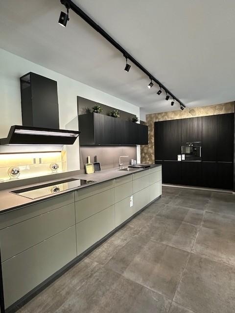 Diese exklusive Küche von Leicht vereint klare Linienführung mit edlen Materialien: Hochglänzende Lackfronten in Olivgrün treffen auf elegante schwarze Holzfronten und schaffen ein harmonisches, modernes Gesamtbild. Die durchdachte Aufteilung und hochwertige Ausstattung machen sie zu einer Küche, die nicht nur optisch, sondern auch funktional überzeugt.