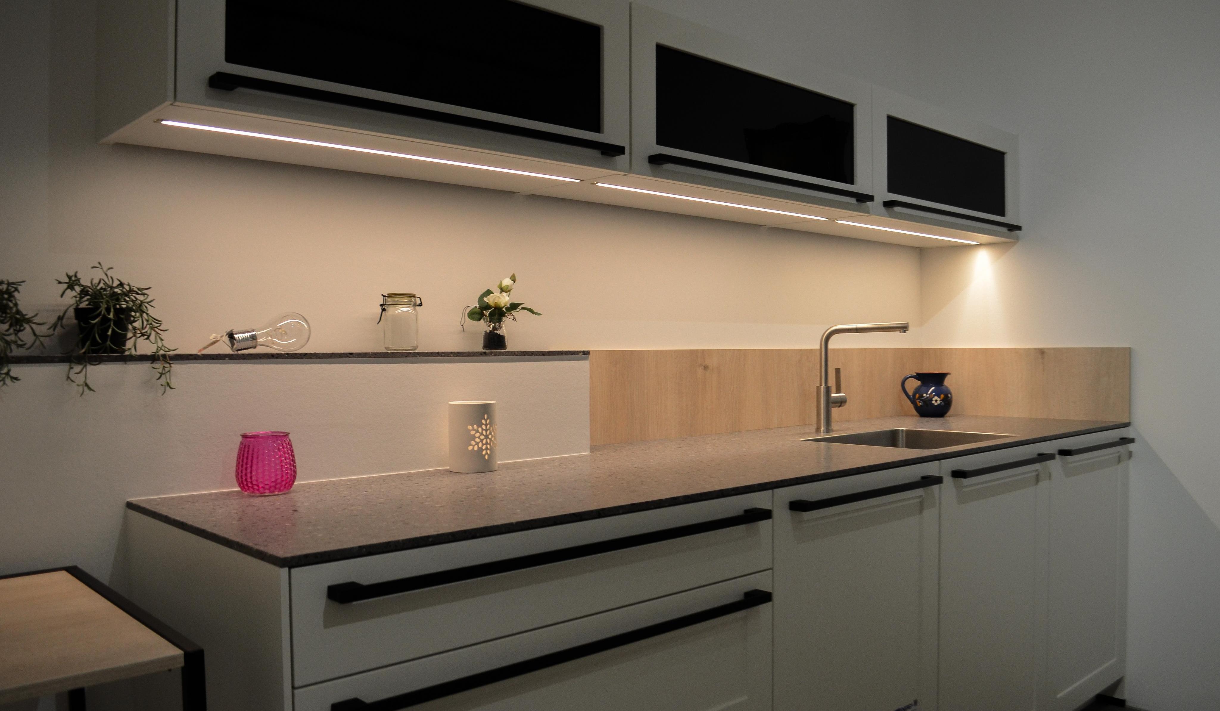 - Moderne Hängeschränke mit Glasfront und LED-Beleuchtung